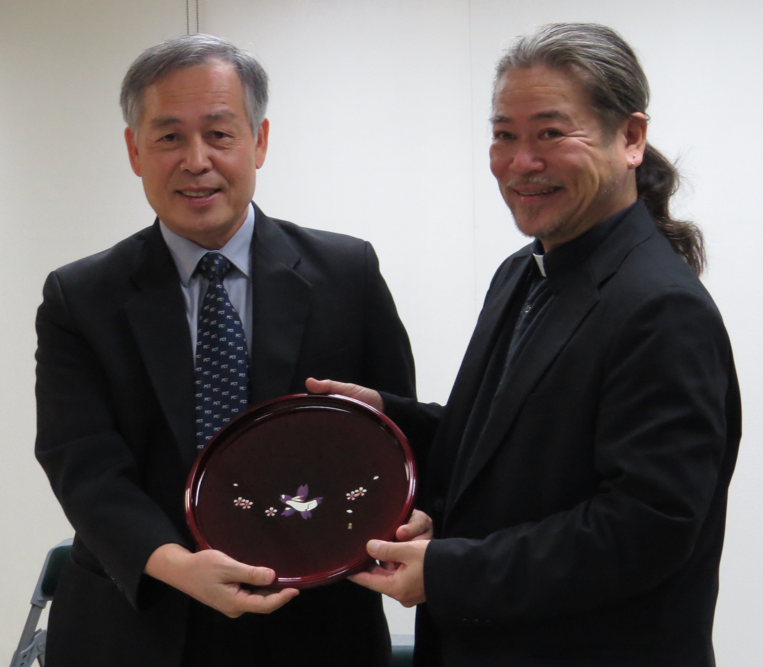 日本東北教區普世幹事片岡謁也牧師贈送釉彩茶盤